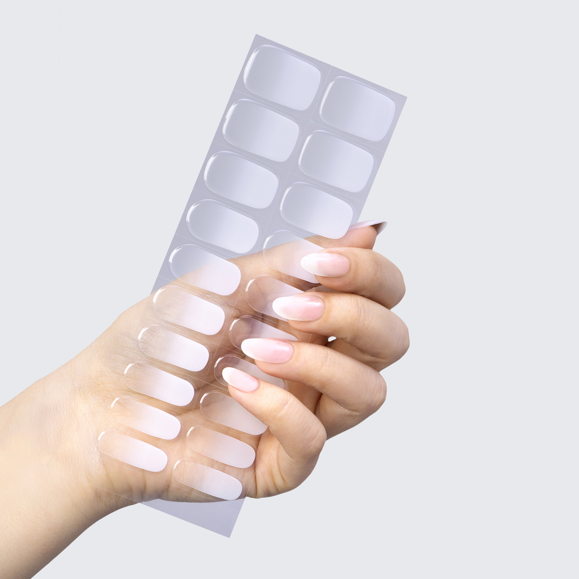 Ombré French tip. White. Opaque to translucent. Neutral undertone.
